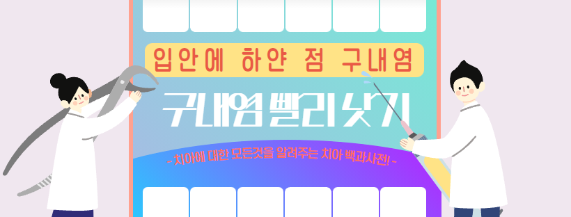 구강내 생긴 불꽃 의 뜻을 가진 염증은 구강 내벽 안 점막 조직에 미세한 상처가 타원형으로 괴사(壞死)하는 염증으로 알려져 있습니다. 탈수같이 여러 원인으로 신체 수분이 줄어들면, 구내염 또는, 치주염, 충치 등 발생할 확률이 높으니, 물을 하루에 2L는 마셔 신체 수분을 계속 보충해 입안을 촉촉하게 하는 습관을 기르는 것이 중요합니다.