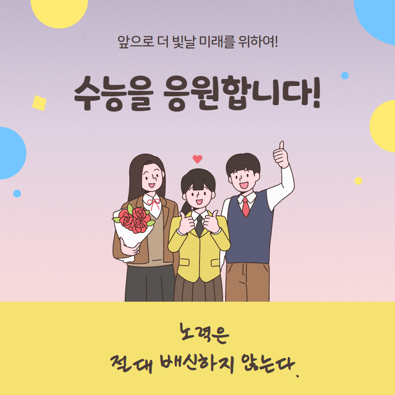끝으로 한해 동안 내일 시험을 위해 혼힘을 다해 노력한 수능생 여러분 화이팅입니다.